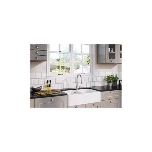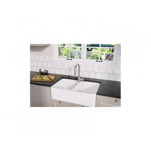 Мойка Blanco Villae Farmhouse Single выполнена из керамики и подходит для установки в кухонный шкаф шириной 80 см. Отводная арматура InFino с корзинчатым вентилем 3 ½“ и переливом.