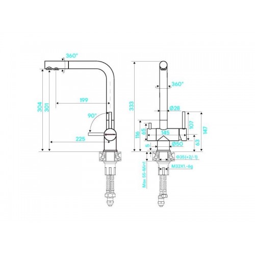 Смеситель KÜCHENSTERN FOKUS-F объединяет сразу две функции - питьевая и обычная вода из одного смесителя. Смесителем удобно пользоваться , так как он имеет два отдельных рычага управления для водопроводной и фильтрованной воды.