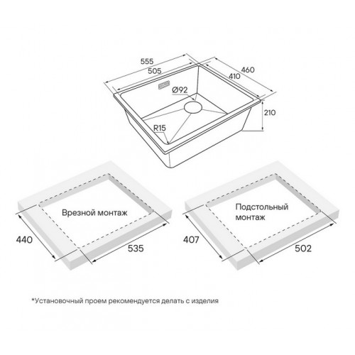 | Тип монтажа | монтаж сверху или под столешницу |