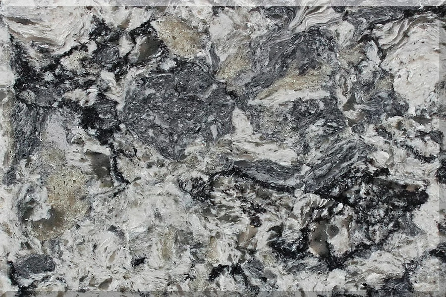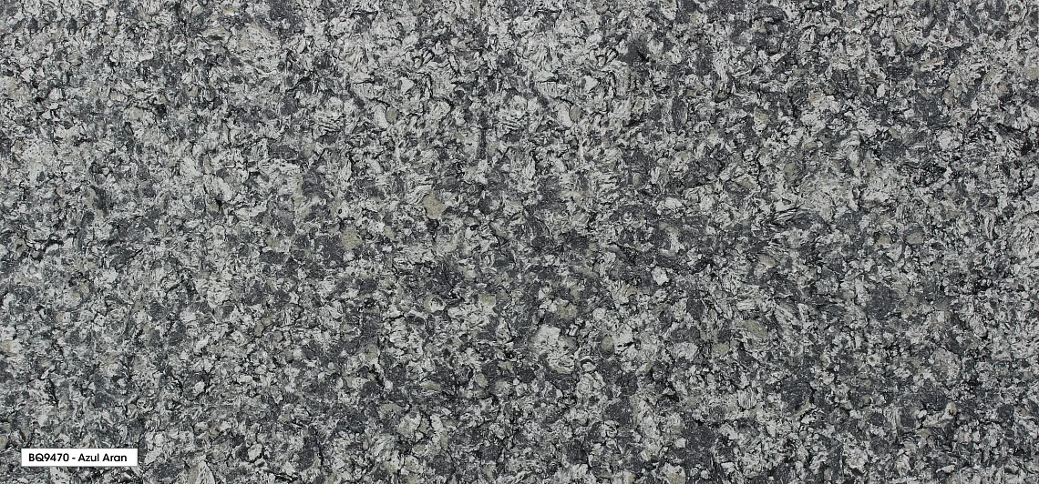 Vicostone Azul Aran BQ-9470 - это кварцевый агломерат с полированной поверхностью темного цвета, сочетающий в себе эффектные светло-серые и темно-серые разводы, что делает его особенно привлекательным.