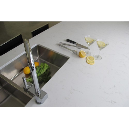 Vicostone Carrara BQ-8220 – это кварцевый агломерат белого цвета с благородными темно-серыми прожилками, который в точности имитирует текстуру известного мрамора Carrara. Этот материал на 93% состоит из природного кварца, благодаря чему он обладает высокой прочностью и устойчивостью к внешним воздействиям, таким как высокие нагрузки, перепады температур и воздействие кислот и растворителей.