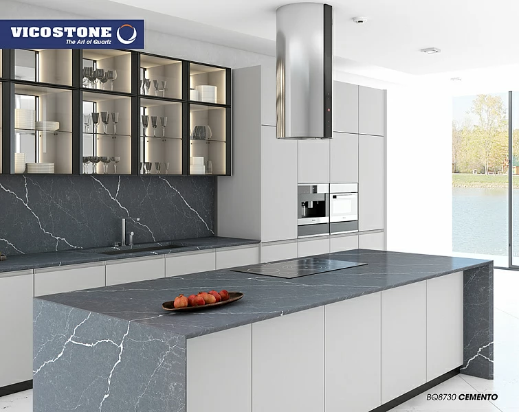Vicostone Cemento BQ-8730: современный стиль и непревзойденная прочность. Вдохновленный природой, этот кварцевый агломерат идеально сочетает стиль и функциональность.