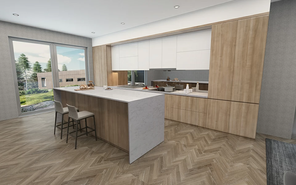 Vicostone Denali BQ-2605: Революция в Мире Кварцевых Агломератов. Vicostone Denali BQ-2605 – это не просто кварцевый агломерат. Это искусство имитации мрамора, воплощенное в крепости и долговечности кварца. Отличительной чертой этого материала является его способность добавлять элегантности и уникальности любому интерьеру благодаря тонким темным прожилкам на фоне чистого белого мрамора.