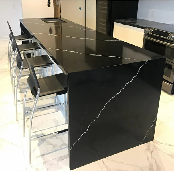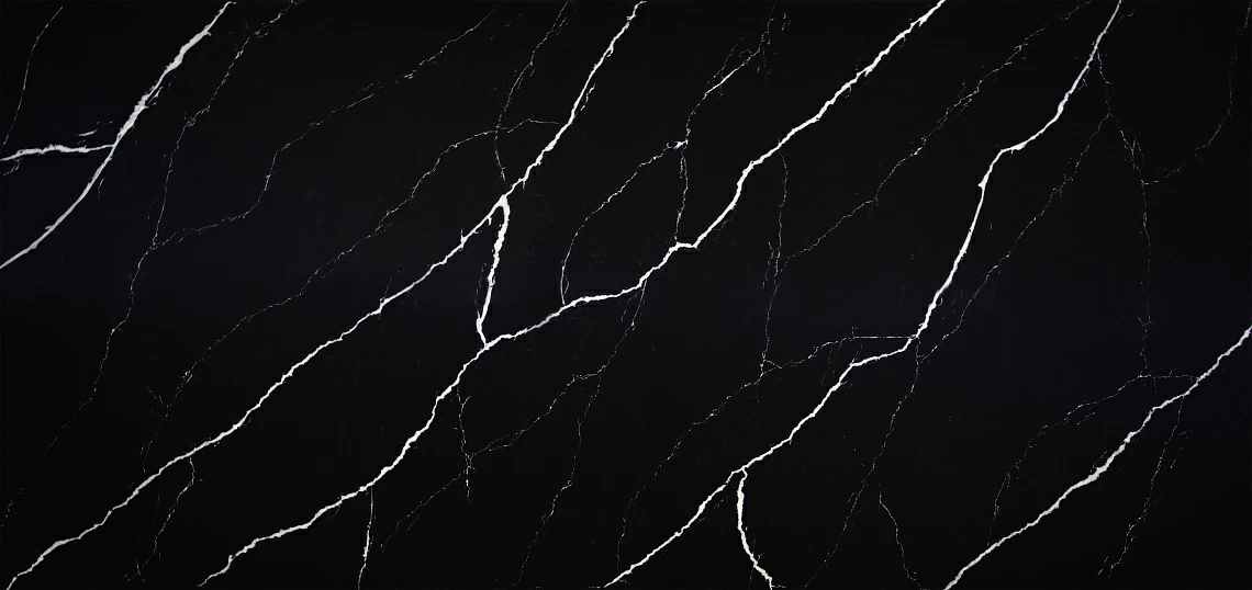Откройте для себя шедевр среди кварцевых агломератов – Vicostone Nero Marquina BQ-8740, который представляет собой воплощение совершенства в копировании знаменитого мрамора Nero Marquina. Наша инновационная разработка предлагает ультрачерный фон с прожилками чистого белого цвета, что делает его самым темным кварцевым камнем на рынке.