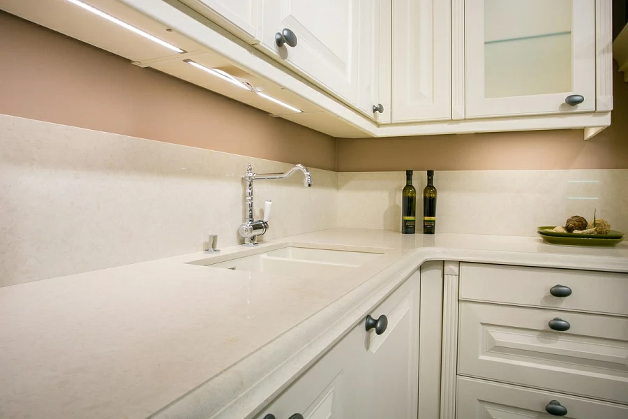 Заинтересовался Vicostone Taj Mahal BQ-9453? Посетите наш каталог камня, чтобы ознакомиться с полным ассортиментом светлых и других оттенков искусственного камня от Vicostone. Откройте для себя идеальный оттенок, который гармонично дополнит вашу классическую кухню.
