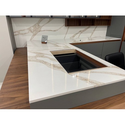 Выбор Vicostone Vivalioro BQ-8918 — это выбор в пользу абсолютной роскоши и функциональности. Насладитесь не только непревзойденной эстетикой вен Calacatta, но и уверенностью в том, что ваш выбор удостоен звания рекордсмена продаж. С Vicostone воплотите в жизнь самые смелые дизайнерские идеи.