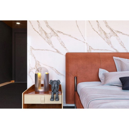 Vicostone Vivalioro BQ-8918, вдохновленный несравненным натуральным камнем Calacatta Vagli Oro, представляет собой истинное произведение искусства, воплощающее в себе разлившиеся потоки лавы, словно из самого сердца вулкана. Этот шедевр непревзойденно передает естественный лоск и роскошь мрамора Calacatta, установив новые стандарты в мире кварцевых плит и побив все рекорды продаж благодаря своим завораживающим венам.